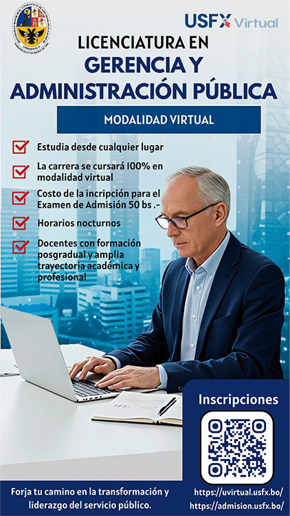 La Universidad San Francisco Xavier de Chuquisaca para favorecer una mayor democratización, accesibilidad y cobertura educativa, ofrece la oportunidad de obtener una educación superior a través de la virtualidad. Esta oferta beneficiará a: